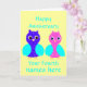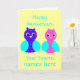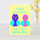 Niedliche Eulen-Paare. Fügen Sie Namen Front der Jahrestagskarte, Änderungszahl von Jahren und alle Extramitteilung und Namen nach innen hinzu. Ein Paar niedliche rosa und blaue Eulen. Viertel hier gezeigt.