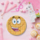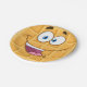 Eine glückliche Waffel mit einem lächelnden Gesicht auf ihm. Dieser Entwurf schaut wirklich effektiv auf diesem PapierTeller