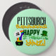 Erhalten Sie dieses sammelbare Mega- Knopf-Button mit des St Patrick der Sozialschmetterlings-Zeitschrift Tageslogo und der Phrase "Pittsburghshenanigans-glücklichen des St Patrick Tag Yinz!" Dieses geht mit unseres glücklichen St Patrick TagYinz Kleidungs-Linie perfekt!