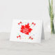 Grußkarte mit meinem originellen Design eines roten Ahornblattes, kanadische Fahnen und Konfetti. Im Text steht: "Glücklicher Arbeitstag!"