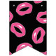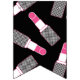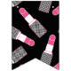 Make-up-themenorientierte glückliche mit dem Kopfe stoßende Flaggen des Bonbons 16 in rosa, in weißem und in Schwarzem, glatte rosa Lippen, Lippenstift, Tupfen und Streifen kennzeichnend.