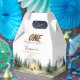 Diese lustigen Partybegünstigungskartons zum 1. Geburtstag mit einem süßen Bären, der im Wald campen geht, können mit all Ihren besonderen Geburtstagsfeier-Details personalisiert werden. Entworfen von Thisisnotme©