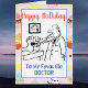 Der Arzt benutzt sein Stethoskop auf den Füßen des Patienten. Personalisieren Sie Ihre eigenen Daten und Nachrichten. Hintergrund für Cupcakes. Ideal lustige Geburtstagskarte für einen Doktor.