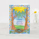 Eine Grußkarte zu Ehren des Frühlings-Äquinoktikums verziert mit einer Naturszene, die einen Vogel kennzeichnet und ihr Vogel nisten voll von den Eiern, die Bäume, die grasartige Hügel und die Sonne hell scheint gestalten.