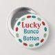 Bunter glücklicher Knopf kennzeichnet einen grafischen geometrischen Entwurf in den Retro Farben. Benutzen Sie diesen viel Glückknopf an Ihrem folgenden Bunco Ereignis, an Fußballturnier, an Bingonacht, an Spielnacht, an Kasinonacht, Sportveranstaltung an, an Wahl, an Golfspiel und an mehr. Ändern Sie Textnachricht, um Ihre eigene Persönlichkeit zu passen!.