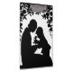 "GLÜCKLICHER MUTTER-TAG" SCHWARZE SILHOUETTE EINES KLEINEN MÄDCHEN, DAS IHRE MUTTER MIT EINER BLUME HAT