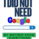 Feiern Sie Ihre Supermutter mit diesem humorvollen und herzlichen Design! Mit fett gedrucktem Text und einem spielerischen Google-Thema erklärt es stolz: "Ich brauchte Google nicht - Meine Mutter weiß alles." Perfekt für Muttertag, Geburtstage oder jeden Tag, an dem du will, Mama zu zeigen, dass sie deine ultimative Quelle der Weisheit ist.