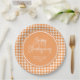 Dieser trendy Erntedankpapier-Teller kennzeichnet einen orange Ginghamhintergrund, mit modernem handgeschriebenem Skript.