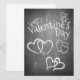 Valentine im Chalkboard-Stil mit Herz und handgeschriebenen kalkigen Grüße auf der Vorderseite der Karte. Die übrigen Bereiche sind frei zugänglich.