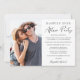 Chic-Eleganz oder kleine Hochzeitsankündigung und Hochzeitsempfang oder Feier Party Einladung. Die Vorderseite zeigt Ihr Foto "Happily Ever After Party" in einer Mischung aus einfacher Typografie und einem modernen Drehbuch, Ihre personalisierte Heiratsankündigung und Empfang-Einladung, und Ihre Namen in einem signaturähnlichen Skript. Auf der Rückseite finden Sie ein zusätzliches Foto, Ihre Vornamen und das Hochzeitstermin.