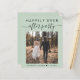 Haushaltsfreundliches und schlaues Grün oder private Hochzeitsankündigung und Empfang-Einladung mit Ihrem Hochzeitstag-Foto und "Happily Ever After Party" in einer Mischung aus einfacher Typografie und einem trendigen Drehbuch mit Swashes. Auf der anderen Seite, personalisieren Sie Ihre Hochzeitsankündigung und Empfang-Einladung detaillierter, geben Sie Ihre Website-Adresse, um einen QR-Code für Gäste zu scannen, um Ihre Hochzeitsfeier, alle Einzelheiten und UAWG online zu sehen, und fügen Sie Ihre Namen in einem signaturähnlichen Skript.