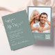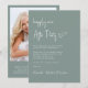 Minimalistische Salbei-grüne Hochzeitsempfehlung mit "Happily Ever After Party" in einem schicken weißen Drehbuch, Ihrer Einladung in klassischer weißer Serifentypografie und Ihren Namen in einem signaturähnlichen weißen Drehbuch. Auf der Rückseite, fügen Sie Ihr Foto und geben Sie Ihre Website Adresse Hochzeit, um einen QR-Code, dass Ihre Gäste können scannen, um UAWG online und erhalten Sie zusätzliche Details.