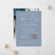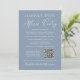 Chic staubblaue Entdeckung oder private Hochzeitsankündigung und Hochzeitsempfang oder Feier Party Einladung. Die Vorderseite zeigt "Happily Ever After Party" in schlichter weißer Typografie und einem modernen weißen Drehbuch. Personalisieren Sie Ihre Ankündigung und Einladung und fügen Sie Ihre Namen in ein signaturähnliches Skript ein. Geben Sie die URL-Adresse Ihrer Hochzeitswebsite ein, um einen QR-Code zu generieren, den Ihre Gäste online scannen und alle Details erhalten können. Auf der Rückseite finden Sie Ihr Lieblings-Foto, Ihre Vornamen und Ihr Hochzeitstermin.