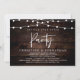 Wunderschönes Ever After Party, Hochzeitsfeier Ankündigung / Einladungskarte, in rustikalen Bauernhof dunkelbraunes Holz, mit Hütte Party Saitenleuchten Design. Dies ist ideal für Ihren Hochzeitsempfang und das Party nach der Hochzeitsfeier.