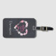 Personalisierter Gepäckanhänger mit einer romantischen Illustration eines Haufen von kleinen rosa glitzernden Herzen, die einen herzförmigen Rahmen bilden. Im Inneren steht "Happily Ever After" in einem trendig handgeschriebenen Schriftart. Set auf schwarzem Chalkboard-Hintergrund.