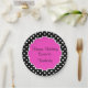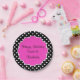 Party-Teller des Geburtstagsbonbons 16 im stilvollen Polkafäulemuster und im rosa Kamm-Muschelartmonogramraum, die Sie mit dem Namenstropfen des Geburtstagsmädchens personifizieren können. Ein niedlicher Entwurf, der ihren Geburtstag in der Art feiert.