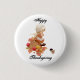 Rundes Button mit braunem Hintergrund mit Truthahn und Gruß