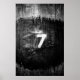 sieben auf einem Holzpfosten gemalt