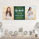 Fügen Sie eine personalisierte Touch zu Uni oder High School Abschluss Party Dekorationen mit diesem grünen, goldfarbenen und weißen benutzerdefinierten Foto Banner. Das Design zeichnet sich durch einen grünen Hintergrund, eine stilvolle moderne Typografie, handgeschriebene Schriftzeichen-Kalligraphie und 2 Fotos des Absolventen aus, wie Seniorbilder oder Bilder aus der Anlaufzeremonie. Bitte beachten Sie, dass Gold gelbe Farbe hat, nicht metallische Folie. Dieses Party-Schild ist eine elegante Art, den besonderen Tag zu feiern. Herzlichen Glückwunsch an den Absolventen!