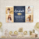 Fügen Sie eine personalisierte Touch zu Uni oder High School Abschluss Party Dekorationen mit diesem maßgeschneiderten 4 Foto Collage Marine Blau, Gold und Weiß Banner. (IMAGE PLACEMENT TIP: Eine einfache Möglichkeit, ein Foto genau so zu zentrieren, wie Sie es gewollt haben, ist es, es einzuschneiden, bevor Sie es auf die Zazzle-Website hochladen.) Das Design zeichnet sich durch einen blauen Hintergrund aus, Imitat-Folientafel, stilvolle moderne Typografie, handgeschriebene Schriftzeichen-Kalligraphie und vier Fotos des Absolventen aus, wie Seniorenbilder oder Bilder aus der Anlaufzeremonie. Bitte beachten Sie, dass Gold farblich gedruckt ist, nicht metallische Folie. Dieses Party-Schild ist eine elegante Art, den besonderen Tag zu feiern. Herzlichen Glückwunsch an den Absolventen!
