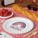 Diese niedlichen, modernen Teller sind mit einem farbenfrohen, rot-weiß-blauen Regenbogen mit Herzenslust ausgestattet und sagen "Happy 4th of July America" in trendigem, handgeschriebenem Text. Dieses coole Urlaubsstil ist perfekt für Ihr Party zum Unabhängigkeitstag.