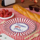 Am 4. Juli US Flagge in Rot und Blau für Ihr Picknick am Unabhängigkeitstag - sehen Sie sich in unserem Shop für passende Papierservietten und Papierbecher an