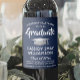Fügen Sie eine personalisierte Touch zu den Dekorationen der Uni- oder High School-Abschlussfeier mit den eleganten Flaschenmarken in Marineblau, Weiß und Silber hinzu. Das Design zeichnet sich durch einen blau gebürsteten Hintergrund, Imitate aus rostfreiem Edelstahl-Mörtel, stilvolle moderne Typografie, handgeschriebene Schriftzeichen-Kalligraphie und eine anpassbare Message mit dem Titel "Herzlichen Glückwunsch an unseren Absolvent" aus. Der Text am unteren Rand beinhaltet das Unterrichtsjahr, den Schulnamen und optionale Zeilen für den Abschluss, den Getränketyp oder andere Informationen. Der gesamte Text ist einfach anzupassen. Bitte beachten Sie, dass Silber gedruckt ist, nicht metallische Folie. Diese Labels bilden eine stilvolle Graduiertengetränk-Idee und eine elegante Ergänzung zum besonderen Tag-Fest des Absolventen. Prost!
