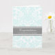 Glückwunschkarte für die Eltern der Braut in zeitgenössisch helltürkis aqua himblau, dunkelkohle grau und weiß klassische Vintage Damast Muster. Text ist vollständig anpassbar, damit Sie Ihre eigene personalisierte Botschaft schreiben können, eine einzigartige Art, die Eltern der Braut zur Ehe ihrer Tochter zu beglückwünschen.