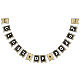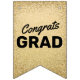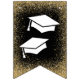 Elegante Abschlussfeier mit einem Schwarz-Gold-Thema, einschließlich der stilvollen Imitate Gold Glitzer, Mörtel, Sterne, die Worte "Glückwunschs grad" und das Jahr der Klasse.