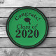 Dekorieren Sie Ihr Party mit diesen Schule Farbe Glückwunsch Klasse von 2024 Green Black Teller. Personalisieren Sie das Jahr Ihres Absolventen. Es ist in den Farben Grün und Schwarz der Schule und klassischer Schriftart gehalten. Glückwunsch! ist gewölbt über eine Graduierthülle und das Klassenzimmer.
