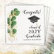 Erstellen Sie individuelle, elegante Blumenservietten 2025 mit schwarzer Typografie, die mit smaragdgrünem Eukalyptus-Blattwerk dekoriert ist, und Graduiertenkappen-Illustrationen. Verwenden Sie die Vorlage, um mit dem Namen des Absolventen zu personalisieren und das Jahr anzupassen.