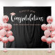 Extra große Abschluss Zeremonie oder Party Hintergrund für alle Fotos der Absolventen! Das Design ist minimalistisch und bietet ein modernes, weißes "Gratulus" Kalligraphie-Skript-Design mit Rose goldener Grade-Akzent auf einem schwarzen Hintergrund. Personalisieren Sie den benutzerdefinierten Text mit dem Klassenjahr und dem Schulnamen.