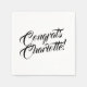 Glückwunsch Schwarz-Weiß personalisierte benutzerdefinierte Skriptkalligrafie Name eleganten minimalistischen schicken Party Papier Napkins. Vollständig anpassbarer schwarzer Text. Ideal für Feiern, Abschlüsse, Leistungen, neue Arbeit, Werbeaktion, Verlobung, Schwangerschaft, etc.