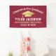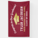 Begrüßen Sie Ihren Absolventen stilvoll mit einem modernen personalisierten Abschluss-Banner mit goldfarbenem Graduiertenmütze und sportlichem, maßgeschneiderten Text für den Namen, die Schule und das Unterrichtsjahr. Die Farben Rot, Weiß und Gold können an Ihre Party-Farben angepasst werden.