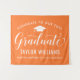 Elegante Abschlussfeier Hintergrund-Zeichen gratuliert und feiert Ihren Absolvent im Stil! Das Design umfasst eine Graduiertenkappe, einen "Graduate" in der Schrift und einen modernen, individuellen Text, der mit dem Namen und der Schule des Absolventen personalisiert werden kann. Orangefarbene und weiße Farben können individuell angepasst werden.