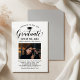 Elegante Abschluss-Ankündigung Karte und Abschlussfeier Einladung gratuliert und kündigt Ihren Absolvent in der Art! Die schwarze Graduiertenkappe, "Graduate" in der Schrift und der moderne, benutzerdefinierte Text, der mit dem Namen, der Schule und dem Party des Absolventen personalisiert werden kann. Fügen Sie ein beliebtes Foto des Abschlusses hinzu. Beachten Sie, dass die neutrale Farbe des grauen Akzents auf der Kartenrückseite in Weiß oder eine andere Farbe geändert werden kann, die mit den Farben Foto oder Party koordiniert wird.