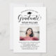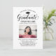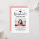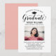Elegante Abschluss-Ankündigung Karte und Abschlussfeier Einladung gratuliert und kündigt Ihren Absolvent in der Art! Die schwarze Graduiertenkappe, "Graduate" in der Schrift und der moderne, benutzerdefinierte Text, der mit dem Namen, der Schule und dem Party des Absolventen personalisiert werden kann. Fügen Sie ein beliebtes Foto des Abschlusses hinzu. Beachten Sie, dass die Rose gold/rot rosa Akzent auf der Kartenrückseite in Weiß oder eine andere Farbe geändert werden kann, die mit den Foto- oder Party-Farben koordiniert wird.