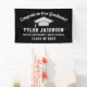 Begrüßen Sie Ihren Absolventen stilvoll mit einem modernen personalisierten Abschluss-Banner mit goldfarbenem Graduiertencap und sportlichem, maßgeschneiderten Text für den Namen, die Schule und das Unterrichtsjahr. Schwarz-, Silber- und Weißfarben können an Ihre Party-Farben angepasst werden.