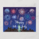 Einzigartiges und schönes Feuerwerk in Rot, Weiß und Blau mit der Freiheitsstatue in einer Silhouette von New York City zum Unabhängigkeitstag. Alles Gute zum 4. Juli!