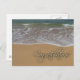 Sandstrand mit blauen Ozeanwellen und Gratulationen in weißen Skript-Schriftart. Perfektes Design für Absolventen, neue Arbeit, Flitterwochen, einfach verheiratet und mehr.