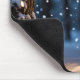 Glühende weiße Weihnachtslattern in Schnee und Schneeflocken in der Nacht