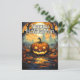 Dieses kreative Happy Halloween Postcard zeigt ein finsteres Bild eines strahlenden Kürbis, tief im Wald. Bitte passen Sie alle verfügbaren Optionen nach Ihren Wünschen an.