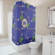 Glühende Glühwürmchen tanzen unter schwebenden Blätter über einem tiefblauen Hintergrund. Orangefarbene und silberne Ringe schaffen einen Effekt wie stilisierte Wellen, um der Basis ein wasserähnliches Gefühl zu verleihen. Die Duschvorhänge sind individuell gestaltet, um eine personalisierte Dekoration für Ihr Bad zu schaffen.