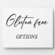 "Glutenfrei" Tabletop Plaque mit Easel ist eine charmante Ergänzung zu Ihrer Hochzeitsdekoration oder besonderen Eventdekor. Diese elegante und stilvolle Plakette besticht durch die diätetische Küche, die Sie in einem handgeschriebenen Schriftart genießen können. Die Tafel ist auf einem robusten Aal montiert und lässt sich so einfach auf jedem Tisch oder Regal abbilden. Unsere Plakette ist auf hochwertigen Materialien gedruckt und dauerhaft und garantiert, dass sie für die kommenden Jahre ein geschätzter Sake sein wird. Es ist der perfekte Weg, um eine Sorgfalt mit einer anderen Art von Essen zu schaffen und eine wirklich unvergessliche Atmosphäre für Sie und Ihre Gäste zu schaffen.