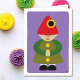 Illustration moderne avec une touche de fantaisie qui est sûr d'apporter un sourire. Envoyez ce joli gnome à un ami ou un membre de la famille lors de leur journée spéciale. Un regard solide, saturé, peint à la main. Violet, vert, jaune, rouge, noir et marron. À l'intérieur : Joyeux anniversaire