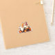 Ein Niedlicher Herbstaufkleber mit Gnomen und Kürbissen und bunten Herbstblättern.