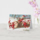 Funny vintage Christmas illustration of little white bearded gnomes dressed like Santa, dragging a cut tree trunk through the snow. Published by L. Prang & Co.