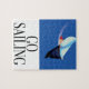 Go Sailing Vintag im Stil der 80er Jahre ist ein Segel-Poster eines Segelbootes auf dem Ozean.