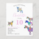 Eine Sammlung von farbenfrohen, niedlichen Ziegen in lebhaften rosa, lila, blau, orange, gelb und aqua. Ein niedlicher Bauernhof lädt zum 10. Geburtstag mit Ziegen- und Ziegenbabys stehend ein. Diese lustige Party Einladung ist leicht zu personalisiert, um eine einzigartige Party Einladung für Kinder und erwachsene Ziegenliebhaber zu schaffen. Farbenfrohe rosa thematische psychedelische Ziege Original-Illustrationen von Künstlerin Catherine Sweetman