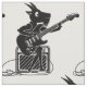 Eine Schwarz-Weiß-Illustration einer Ziege, die auf der Bühne sitzt, unter einer Bühne leuchtet und eine E-Gitarre spielt. Die Ziege sitzt auf einem Amp und kämpft damit, dass sie hupt. Wenn Sie Hilfe bei der Personalisierung dieses Designs oder der Suche nach dem Produkt wünschen, dann kontaktieren Sie mich bitte. Dieser Designer-Button befindet sich unterhalb des Textes und ist gefragt.